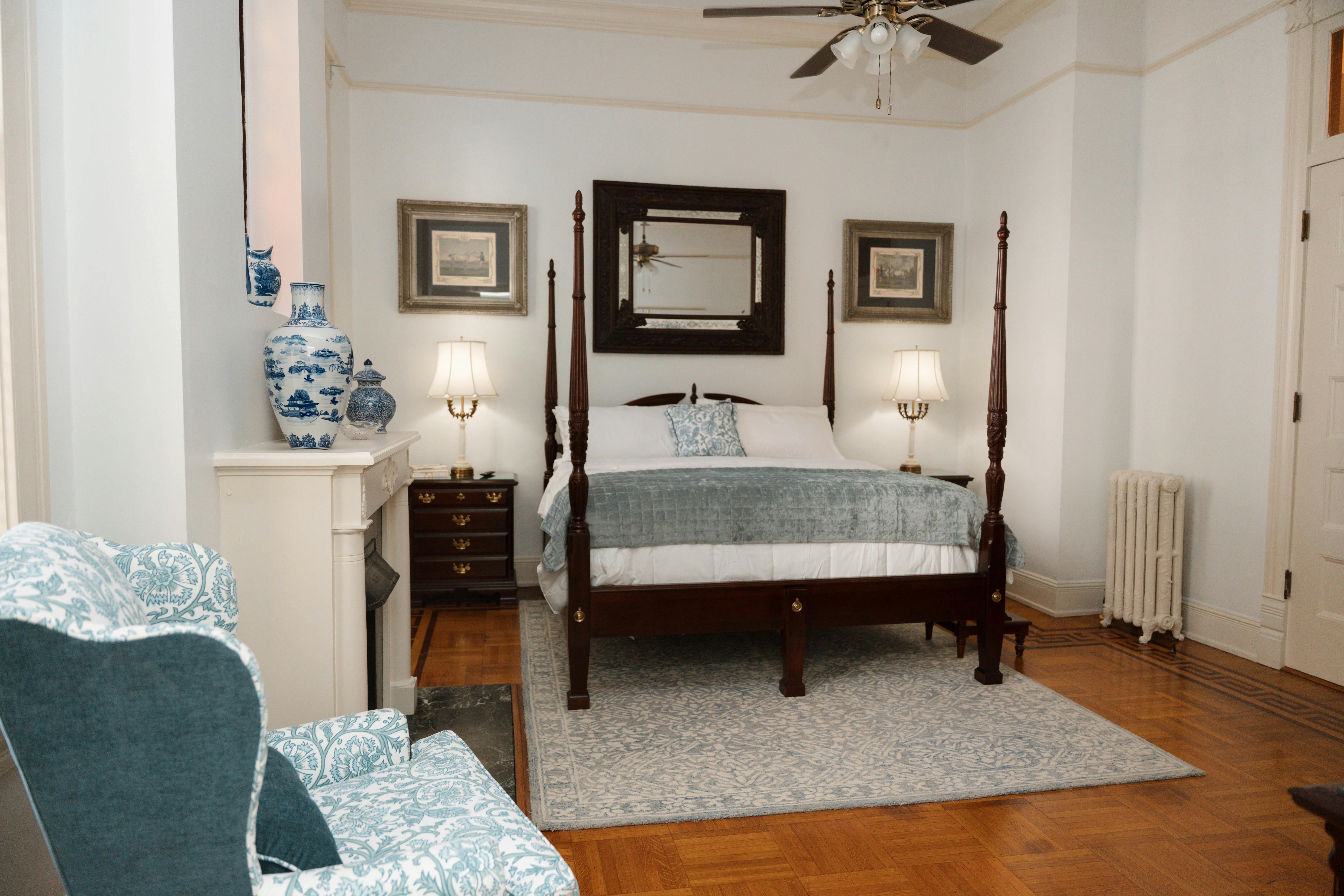 The Capricorn Suite is a warm and inviting retreat that blends timeless charm with modern comfort. Sunlight filters gently through stained glass windows, casting soft patterns of ruby, amber, and emerald across the polished hardwood floors. At the heart of the room stands a plush king-size bed, dressed in crisp white linens and a luxurious quilt, promising a night of deep, peaceful rest. Antique nightstands and a cozy armchair complete the sitting area, where guests can unwind with a book or a cup of tea.